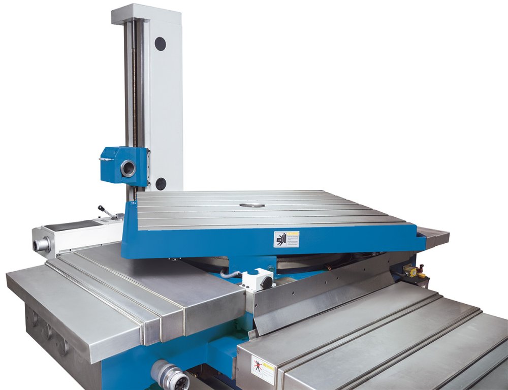 The BO series of conventional boring and milling machines with a fixed column is designed for horizontal multi-sided drilling and milling of workpiece weights of up to 10 tons. The movable table can rotate 360​​°. The drill head moves on the column and the spindle has a long stroke on the W-axis. Efficient machining and short non-productive times result from high drive power and automatic feeds on all axes with rapid traverses. In addition, these conventional boring mills have a facing slide with a long stroke.