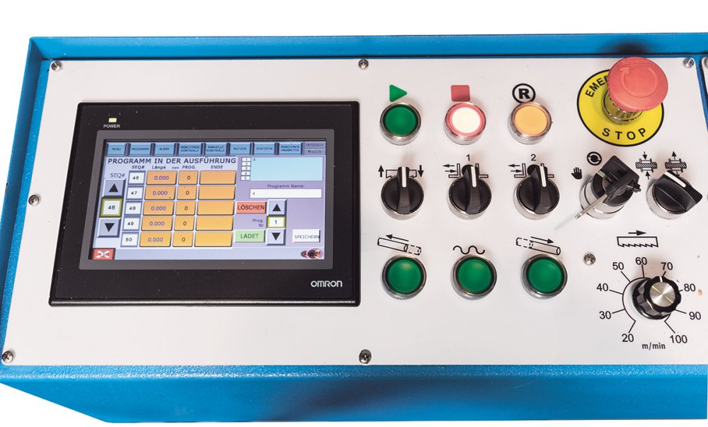 ABS S NC ir augstas veiktspējas ražošanas lentzāģis ar divu kolonnu dizainu. Materiāls tiek padots caur servomotoru ar lodveida skrūvju piedziņu un mērīšanas sistēmu ar pozicionēšanas un atkārtošanas precizitāti +/- 0,2 mm. Omron skārienekrāna kontrolleris var saglabāt līdz 30 programmām ar 50 soļiem katrā. Papildu elastībai šī sērija piedāvā arī hidraulisko komplektu iespīlēšanu kā opciju. Manuāli iestatīto slīpuma leņķi var nolasīt digitālajā displejā. Apstrādājamā detaļa ir hidrauliski nostiprināma.
